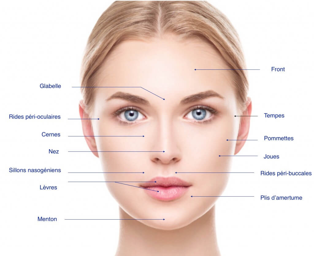 Les indications sont les mêmes chez l’homme et la femme. Rides du front, temps, sillon nasogénien, pommettes, lèvres, ovale du visage, décolleté