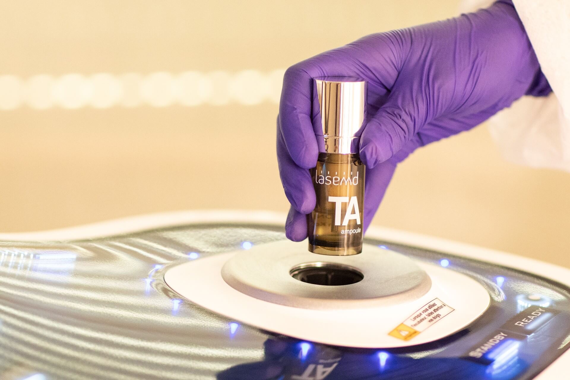 Le principe actif est conservé sous forme de poudre et est mélangée à une substance aqueuse par centrifugation. On intègre la cosmétique à la technique du laser.